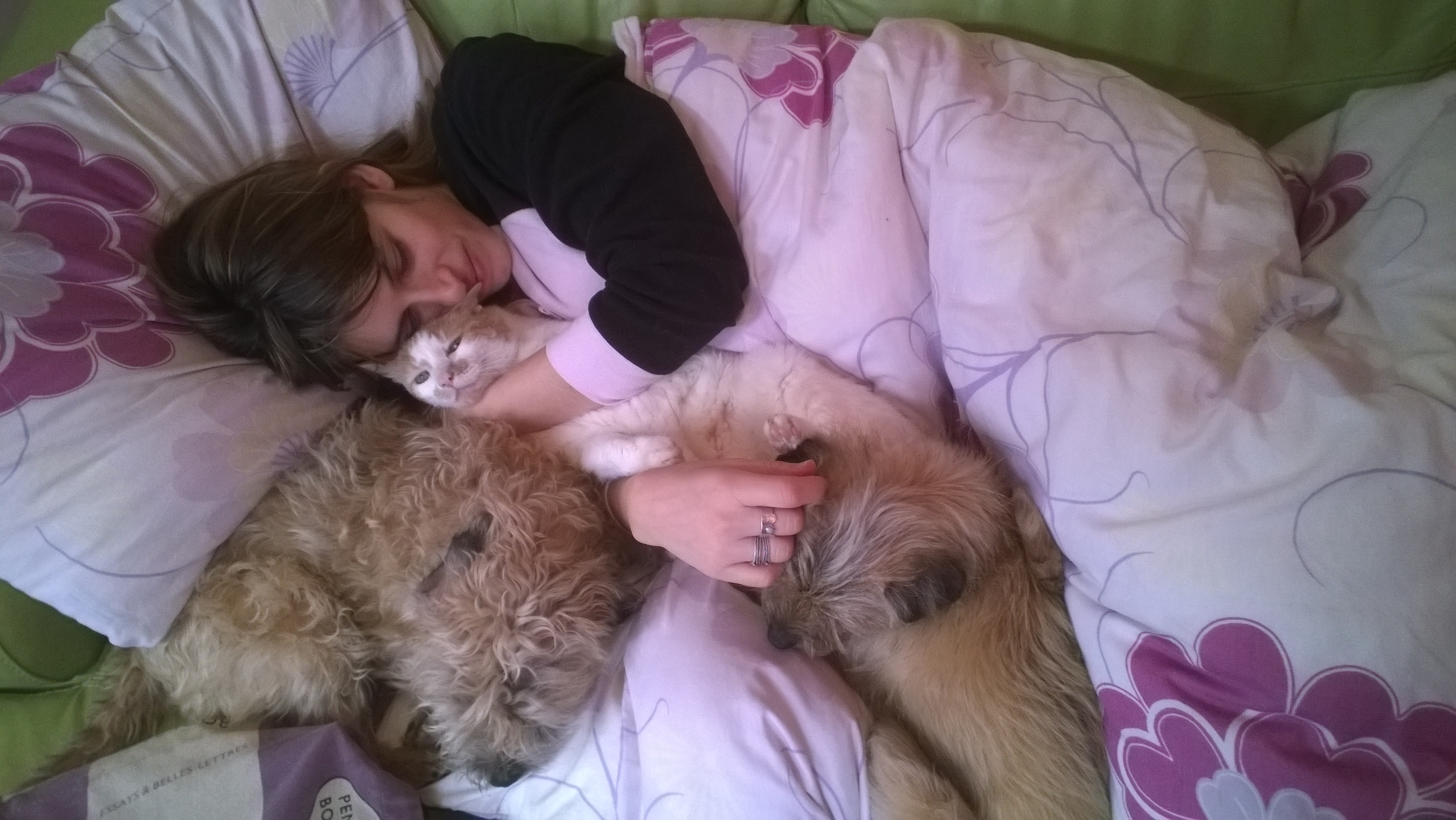 Last week I also felt guilty because I thought maybe I hadn’t loved Simba enough – or maybe I hadn’t showed him enough. My lovely husband helped me get all the photos we have of him into one folder and this was my favourite one – although you can’t actually see him very well because he is being cuddled and squashed by the dogs – this was taken when I was spending the day on the sofa after having a minor operation on my head – there was no way the animals were going to let me lay there alone…